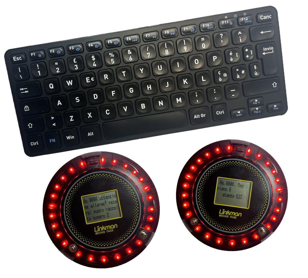 I messaggi e le chiamate possono essere inviate con un trasmettitore a tastiera oppure con una tastiera tipo PC dedicata: con la tasiera è molto facile e veloce scrivere ed inviare in tempo reale messaggi di testo alfanumerico fino a 56 caratteri .